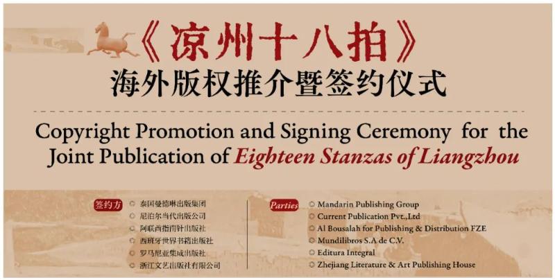 6月15日下午,由浙江出版聯(lián)合集團主辦、浙江文藝出版社承辦的《涼州十八拍》海外版權(quán)推介暨簽約儀式,將在第二十九屆北京國際圖書博覽會舉辦。儀式現(xiàn)場,葉舟就《涼州十八拍》發(fā)表主旨演講,并將簽訂《涼州十八拍》泰語、尼泊爾語、阿拉伯語、西班牙語、羅馬尼亞語等語種版權(quán)輸出協(xié)議。