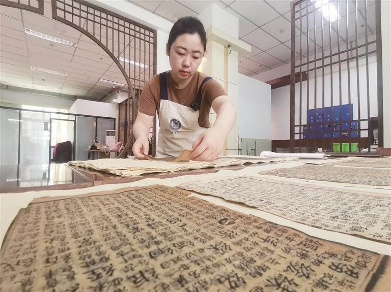 目前,對(duì)于“九零后”修復(fù)師康麗萍來(lái)說(shuō),還肩負(fù)著培養(yǎng)“零零后”年輕修復(fù)師的任務(wù)。“未來(lái)古籍修復(fù)工作的發(fā)展,需要的已經(jīng)不僅僅是修復(fù)師技術(shù)的支撐,而是要將剛?cè)胄械哪贻p人培養(yǎng)成為一個(gè)強(qiáng)大的修復(fù)團(tuán)隊(duì),讓修復(fù)技藝的傳承后繼有人,也只有整體實(shí)力的提升才能讓更多的古籍在更短的時(shí)間內(nèi)獲得更好的保護(hù)和救治。”