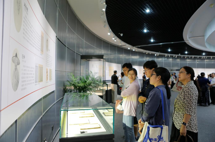 8月22日,市民在揚(yáng)州市圖書(shū)館“冊(cè)府千華——《永樂(lè)大典》與大運(yùn)河文獻(xiàn)展”上參觀。