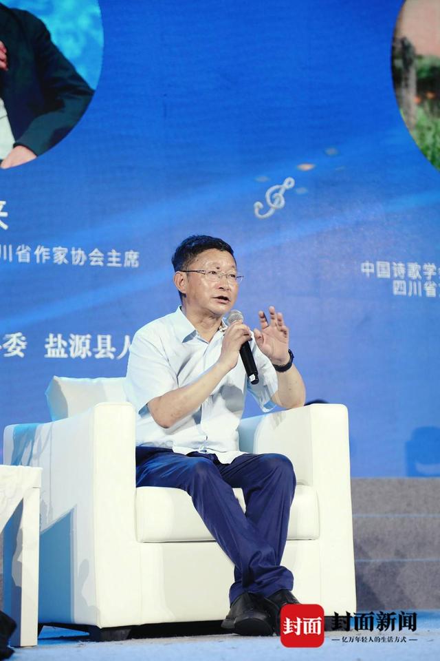 現(xiàn)場,阿來、陳智林與龔學敏就“詩歌創(chuàng)作如何與音樂結(jié)合”“詩歌如何賦能鹽源縣文旅發(fā)展”“如何打造四川特色的文化事業(yè)和文化產(chǎn)業(yè)”等議題展開了對話,深入探討鹽源的詩與遠方。