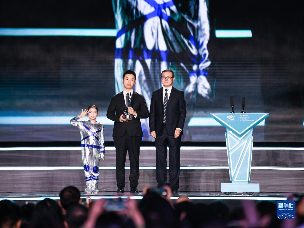 10月21日,中國(guó)作家海漄(中)創(chuàng)作的《時(shí)空畫師》獲最佳短中篇小說獎(jiǎng)。新華社記者 王曦 攝