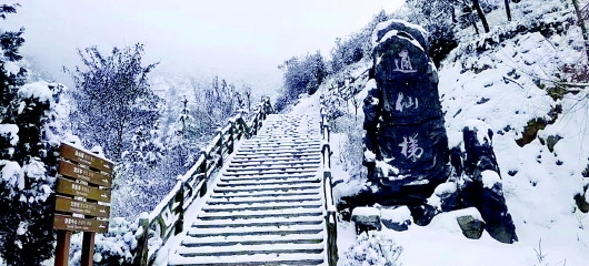 白雪覆蓋著天地間的一切喧囂,此時(shí),朝著山門向上望去,通天梯沒(méi)入天際,天與山的交界處一片蒼茫,分不清是云是煙,似乎上面真是仙境,讓人忍不住想要探尋。
