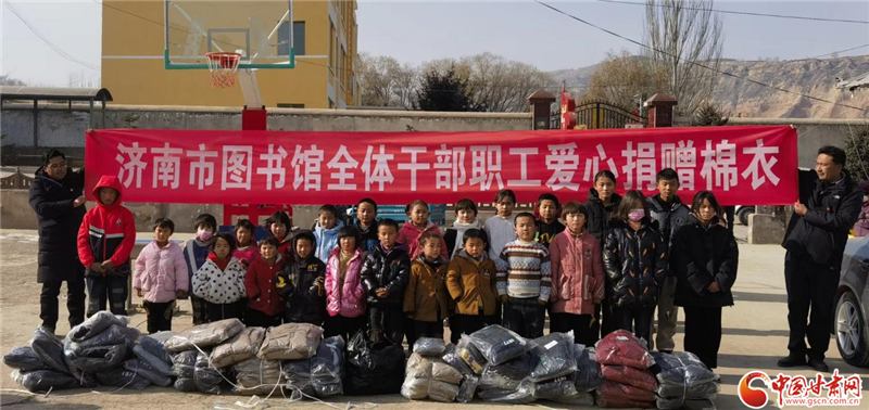 濟南市圖書館為積石山縣滿陳家村小學(xué)捐獻愛心棉衣
