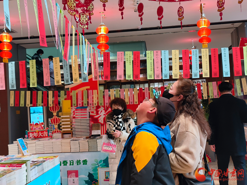 中國甘肅網(wǎng)2月21日訊 (西北角·中國甘肅網(wǎng)記者 張?zhí)m琴)這個周六就是元宵節(jié),從今天開始,甘肅省新華書店在全省各門店開展的猜燈謎活動拉開了鬧元宵系列活動的序幕,也將“書香潤隴原 文化過大年”系列活動推向高潮,進一步讓“進書店過大年”成為新時代年俗和龍年春節(jié)里一抹亮麗風(fēng)景。