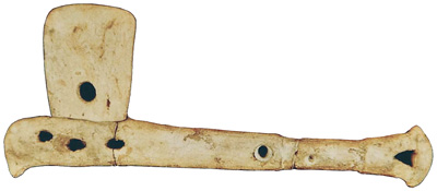 一件有柄穿孔陶斧引發(fā)關(guān)注。它由泥質(zhì)紅陶制成,分柄和穿孔斧兩部分,柄為橢圓形棒狀,前粗后細(xì),前端翹起,有淺槽可嵌入穿孔斧。槽后有三孔,可穿繩縛住穿孔斧,使其固定在槽內(nèi)。柄后端作半月形,并有三角形穿孔。這件有柄陶斧雖非實(shí)用工具,但為當(dāng)時穿孔石斧的裝柄方法提供了實(shí)物證據(jù),讓我們能想象它的功能。陶器基本是素色,器類齊備、器形多樣,鼎、鬶、缽、杯、盆、瓶、壺、豆等應(yīng)有盡有。有的夾砂陶中摻雜有蚌殼粉末,體現(xiàn)水鄉(xiāng)地域特點(diǎn)。青墩陶器造型穩(wěn)重、優(yōu)美,線條簡練而充滿動感,顯示出史前青墩人對于生活的感受。