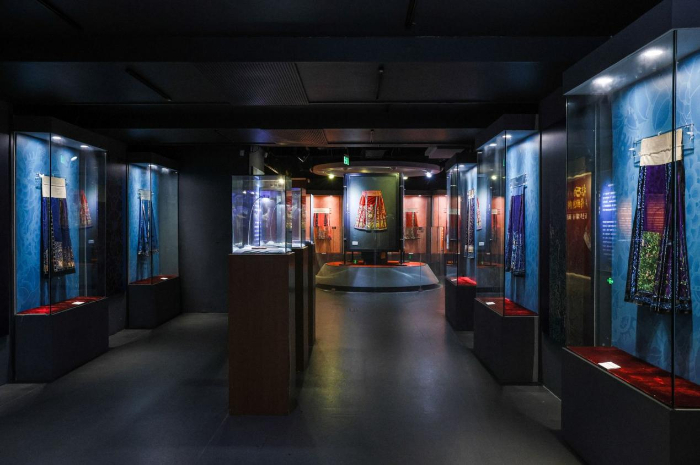 “衣生萬物 傳統(tǒng)重構(gòu)——五色華彩馬面裙”展覽探尋和呈現(xiàn)馬面裙的歷史以及中國古人的制衣智慧與美學(xué)風(fēng)尚,近百條傳統(tǒng)馬面裙實(shí)物及多件當(dāng)代創(chuàng)新設(shè)計(jì)將持續(xù)展出至7月18日。展覽運(yùn)用了“五行五色”中國傳統(tǒng)色彩觀念,將展區(qū)分為赤、藍(lán)、黃、白、黑五個(gè)正色板塊,以及綠和多彩(月華裙)等間色板塊。在展示方式上,傳統(tǒng)馬面裙以平面展示為主,當(dāng)代創(chuàng)新設(shè)計(jì)的馬面裙則以人臺的立體展示為主。
