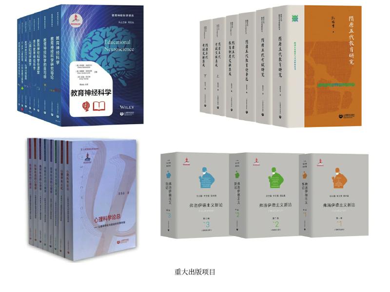 上教社密切關(guān)注新時(shí)代教育發(fā)展的重大理論問題與現(xiàn)實(shí)問題,響應(yīng)國家教育發(fā)展戰(zhàn)略需求,精心布局學(xué)術(shù)專業(yè)出版“大項(xiàng)目”,連續(xù)入選國家重點(diǎn)出版物出版規(guī)劃、2013—2025年國家辭書編纂出版規(guī)劃,獲國家出版基金資助。這其中除前文中的大型??乒ぞ邥?,還包括一系列教育與心理學(xué)原創(chuàng)研究和前沿研究成果:由中國教育史學(xué)者孫培青編著的“隋唐五代教育與考試研究叢書”,構(gòu)建了反映隋唐五代教育與考試全貌的教育理論體系和文獻(xiàn)資料體系,是中國教育史學(xué)科建設(shè)的一項(xiàng)學(xué)術(shù)文化積累工程;《中國課程史》以現(xiàn)代課程理論為分析框架,以歷史線索展現(xiàn)中國學(xué)校課程的新陳代謝;“教育神經(jīng)科學(xué)譯叢”(9冊)是我國首個(gè)聚焦教育神經(jīng)科學(xué)這一國際教育研究前沿領(lǐng)域的學(xué)術(shù)譯介系列;《中國傳統(tǒng)德育心理學(xué)思想新論》系統(tǒng)挖掘整理中華優(yōu)秀傳統(tǒng)文化中蘊(yùn)含的德育心理學(xué)思想,構(gòu)建中國特色心理學(xué)話語體系;我國第一套以大心理學(xué)觀,從本土心理學(xué)視角系統(tǒng)探索和解讀不同形態(tài)心理學(xué)的學(xué)術(shù)系列“心理學(xué)形態(tài)研究系列”(6冊),全景考察心理學(xué)的命運(yùn)與前途,深入探索中國本土心理學(xué)的選擇與突破;《弗洛伊德主義新論》(三卷)匯聚國內(nèi)弗洛伊德主義研究領(lǐng)域的權(quán)威學(xué)者,歷史展現(xiàn)弗洛伊德理論的百年發(fā)展歷程,提供弗洛伊德主義研究的“全景圖”。這些重大出版項(xiàng)目為構(gòu)建中國特色自主知識體系,建設(shè)中國教育學(xué)和心理學(xué)學(xué)科體系、學(xué)術(shù)體系、話語體系發(fā)揮了重要作用。