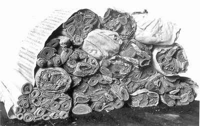 敦煌寫(xiě)卷剛剛從藏經(jīng)洞中拿出的樣子 圖片選自《滿(mǎn)世界尋找敦煌》