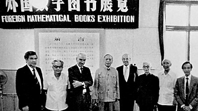 1980年,施普林格出版社在北京一個數(shù)學研討會上舉辦外國數(shù)學圖書展,出席者包括著名數(shù)學家吳文?。ㄗ蠖?、陳省身(左四)和江澤涵(右三)。作者供圖