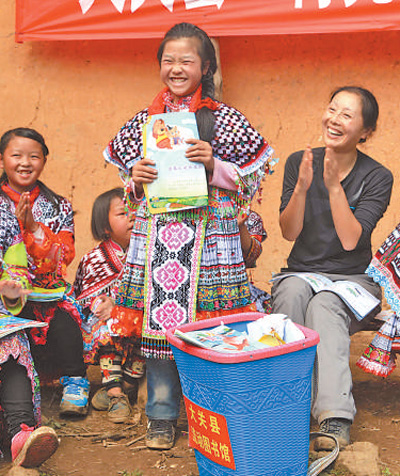 常紹慧和同事們?cè)谧咴L時(shí)了解到:村子海拔1500米以上,居住著50多戶人家,村民只能在地勢(shì)稍緩的地方種些玉米、土豆,收下的糧食,需要背著背簍步行到鎮(zhèn)上集市去賣(mài);因?yàn)榇遄硬煌ü?、沒(méi)有學(xué)校,村里的孩子們要走到5公里外的學(xué)校去上學(xué)。常紹慧想,能為這里做些什么呢?她和同事一合計(jì),想出一個(gè)方案:“咱們圖書(shū)館有很多書(shū)呀,可以幫何家坡建一個(gè)‘流動(dòng)圖書(shū)館’!”