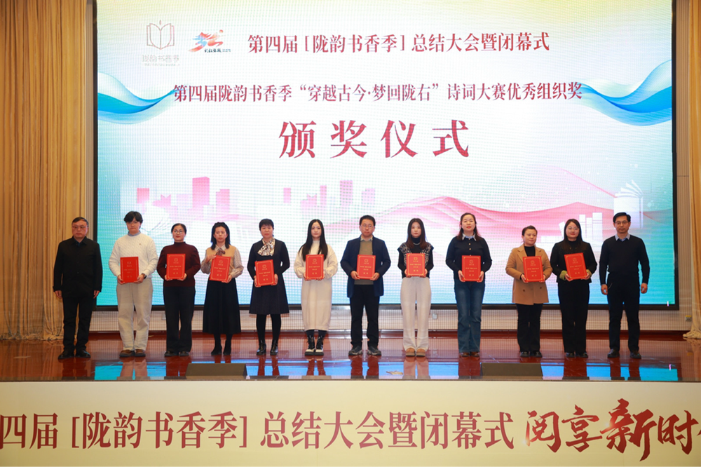 閉幕式上公布并表彰了“優(yōu)秀閱讀推廣活動(dòng)案例獎(jiǎng)”獲獎(jiǎng)人員、“‘穿越古今·夢(mèng)回隴右’詩詞大賽優(yōu)秀組織獎(jiǎng)”獲獎(jiǎng)人員、“‘閱·見西部’第一季——‘詩歌里的家鄉(xiāng)’(甘肅賽區(qū))最佳人氣獎(jiǎng)和優(yōu)秀獎(jiǎng)”獲獎(jiǎng)人員。