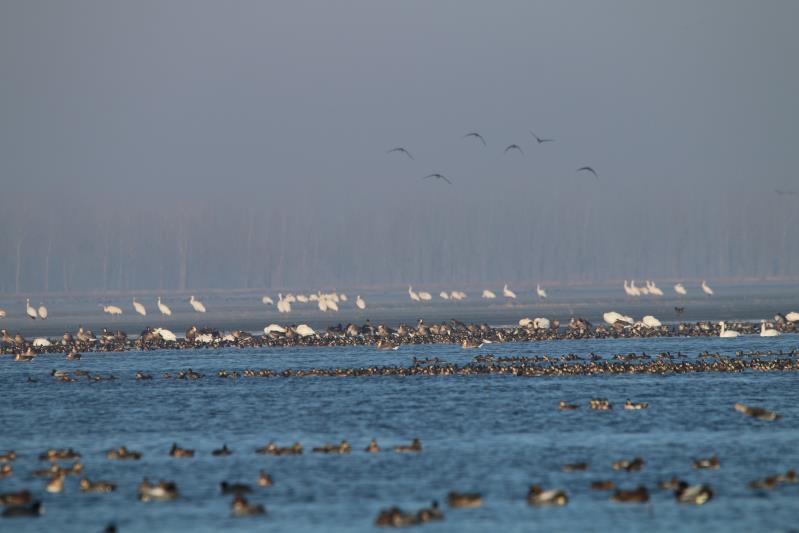 隨著環(huán)境保護(hù)、退耕還濕工作的推進(jìn),獾子洞濕地面積已經(jīng)達(dá)到歷史最大,成為候鳥遷徙的重要驛站,每年春秋兩季,這里都會(huì)呈現(xiàn)萬鳥云集、欣欣覓食的生態(tài)場景。“飛時(shí)猶如云遮日,落時(shí)不見湖邊草”,堪稱世界奇觀。(郭蕾 于勝地、常繼民)