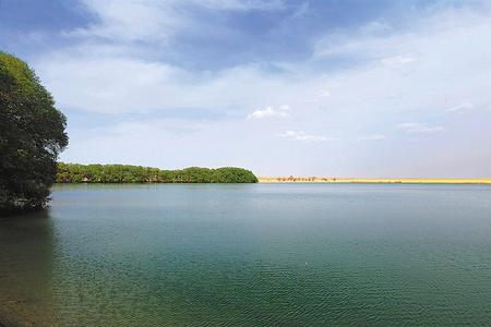 在渥洼池畔舉目遠眺,在阿爾金山皚皚白雪的映襯下,偌大的渥洼池顯得安靜祥和,廣闊的水域就像一面鏡子,鑲嵌在大漠深處,在陽光的折射下顯得格外深邃而內(nèi)斂。渥洼池畔茂密的灌木林和高大密集的蘆葦蕩,將一汪湖水浸染的泛著黛綠,蘆葦和灌木在湖水滋潤下郁郁蔥蔥,高低錯落有致,大有阡陌縱橫之勢。西岸不遠處,南北迤邐著一座兩公里有余的沙坡頭,猶如一條盤旋的黃龍,亙在湖水的西邊搖頭擺尾,它曾經(jīng)以每年兩至三米的速度,肆無忌憚地向渥洼池水域逼進。不過,在陽關(guān)保護區(qū)的精心培育下,一片密集的蘆葦,已經(jīng)爬到了沙梁頂上,將這條黃龍死死地鎖在原地,動彈不得。