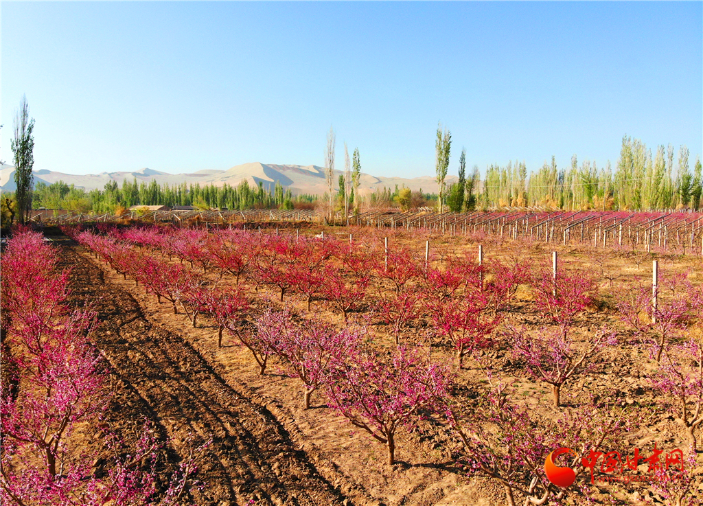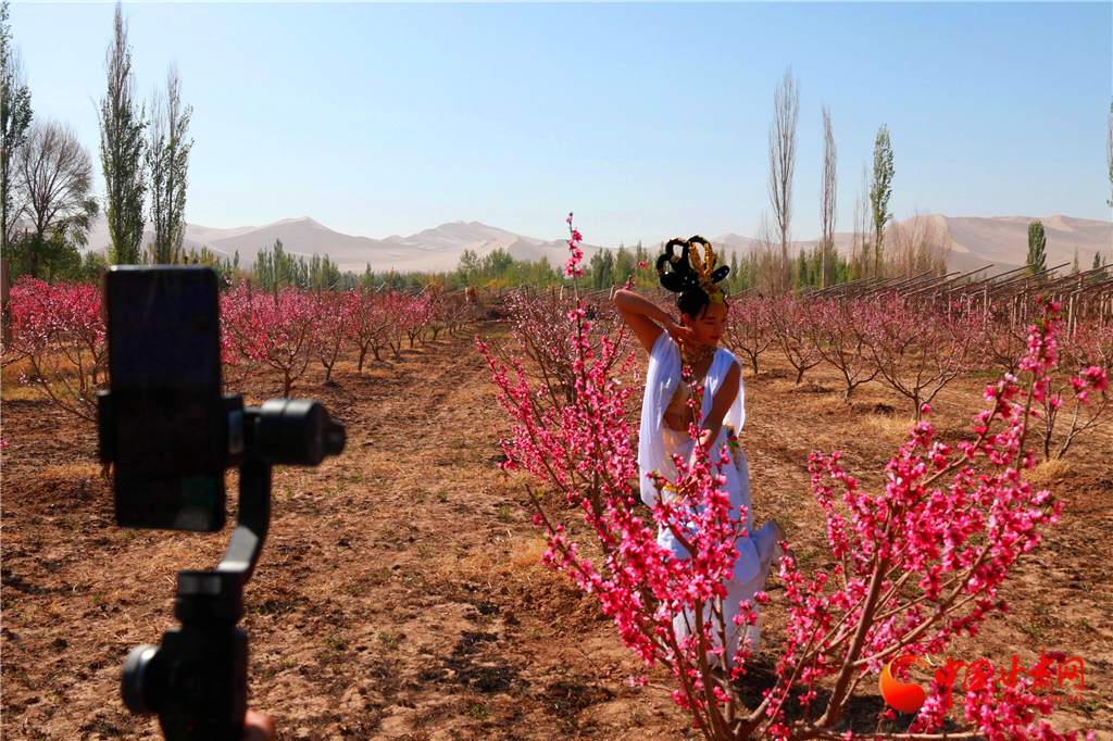 3   甘肅敦煌:鳴沙山下桃花朵朵開(圖)