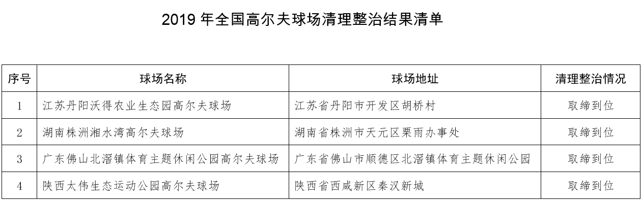 國(guó)家部委聯(lián)合公布全國(guó)高爾夫球場(chǎng)清理整治情況