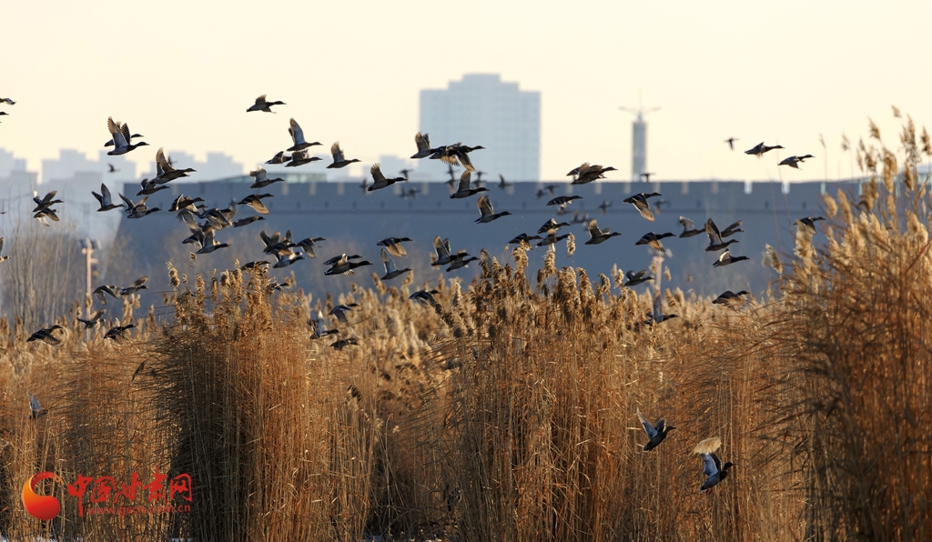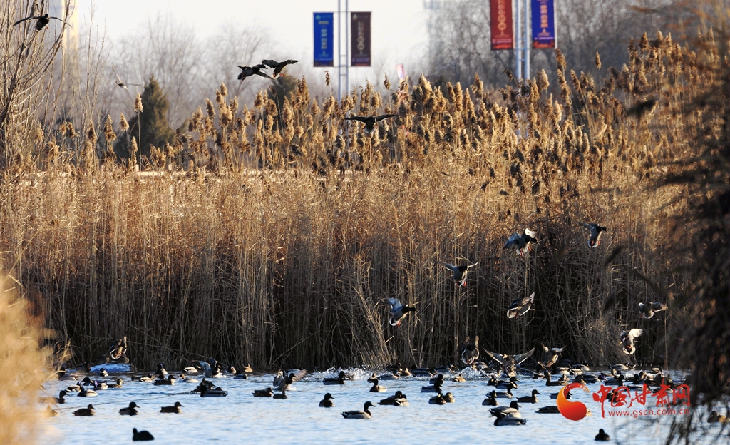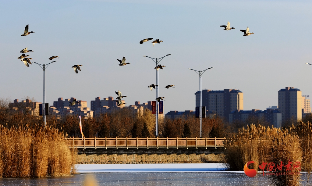 12月15日,張掖國(guó)家濕地公園蘆葦蕩漾,野鴨戲水覓食,呈現(xiàn)出一派充滿活力的蘆葦野鴨戲水圖,為冬日的濕地公園增添了新的趣味。