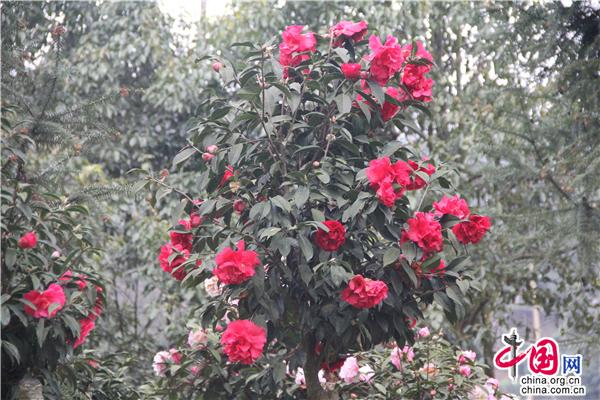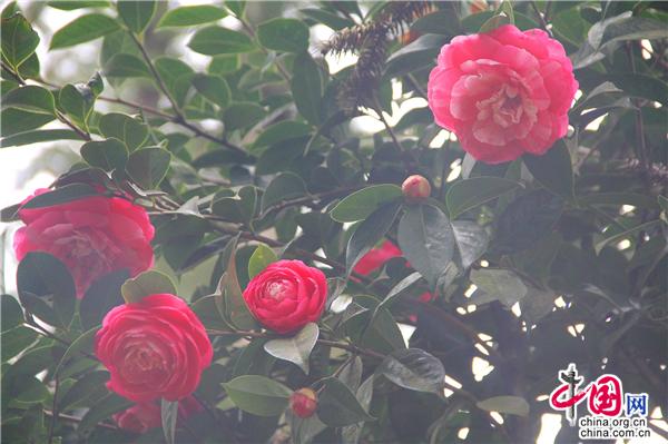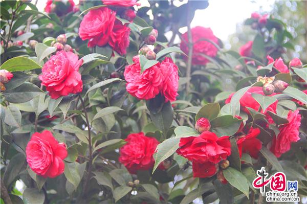 一輪艷陽(yáng)照四方,一席春風(fēng)綠千山。山茶花是中國(guó)傳統(tǒng)名花,也是世界名花之一。2月21日,朋友相約,從縣城出發(fā),約8公里就進(jìn)入九龍生態(tài)園,姿態(tài)各異的山茶花已進(jìn)入盛花期,樹姿虬勁優(yōu)美,綠葉四季不凋,一朵一朵的茶花大如牡丹,燦如云霞,風(fēng)姿綽約,耀眼生輝!植株形姿優(yōu)美,葉濃綠而光澤,花形艷麗繽紛,美艷了。有的鮮紅如火、有的嬌羞染粉、有的晶瑩潔白……滿園茶花勝景。不經(jīng)意間清風(fēng)吹過,暗香徐來,朵朵花兒隨風(fēng)舞。陽(yáng)光穿透葉子的縫隙,落在花間小道上,花香彌漫整個(gè)鼻腔,放低自己,品味花香,眼里有花、心里有花,人生就會(huì)像花一樣美麗。