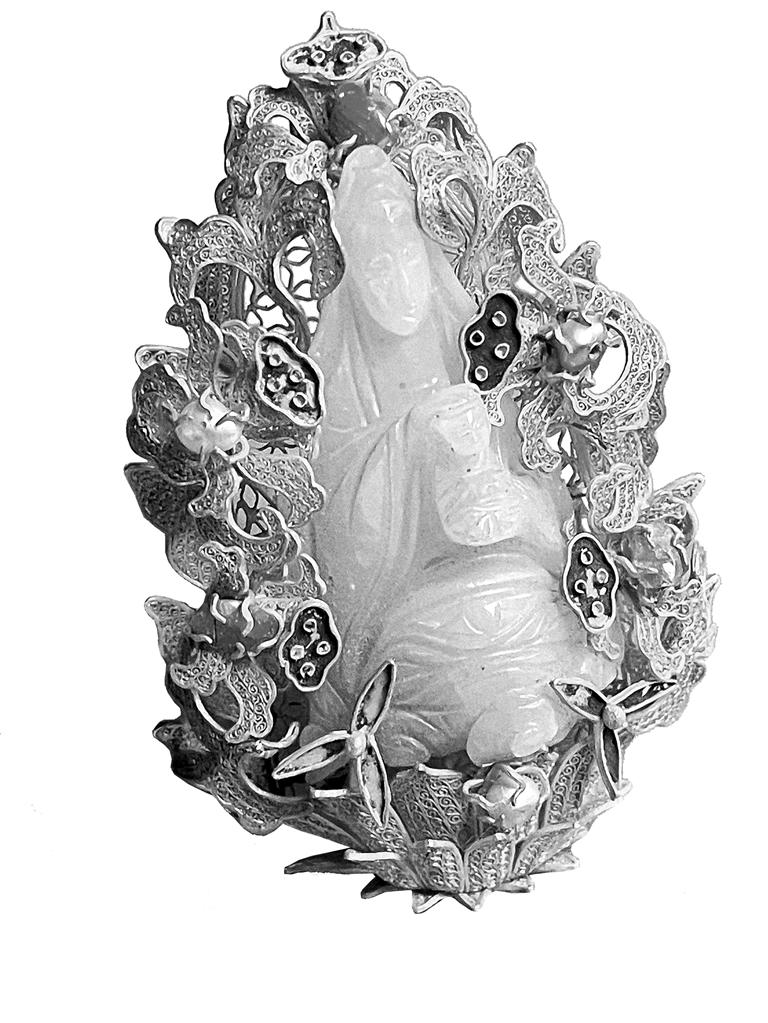 1986年,蘭州市博物館對(duì)白衣寺塔進(jìn)行整體維護(hù),從塔剎天宮處發(fā)現(xiàn)明代珍貴文物46件,其中有《大方廣佛華嚴(yán)經(jīng)》、鎏金釋迦牟尼銅造像、明代印花絲巾等文物,尤其是金蓮玉雕抱子觀音簪和金蓮玉雕魚(yú)籃觀音簪,造型精致,做工精美,表現(xiàn)了很高的明代金累絲手工制造技術(shù)水平,簪柄有銘文21字,“崇禎五年捌月初拾日肅王妃熊氏施伴讀姚進(jìn)兼裝”,被定級(jí)為國(guó)家一級(jí)文物。