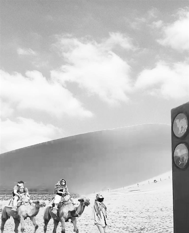 駱駝元素的交通信號(hào)燈亮相鳴沙山·月牙泉景區(qū)。