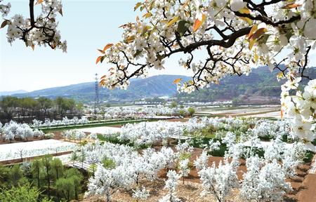 臨洮縣龍門鎮(zhèn)東三十里鋪村千畝梨花漸次盛開。