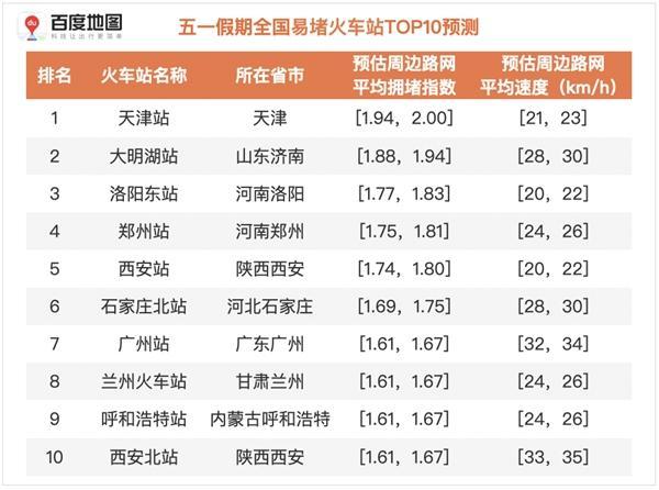 (2021年五一假期全國易堵火車站TOP10預測)