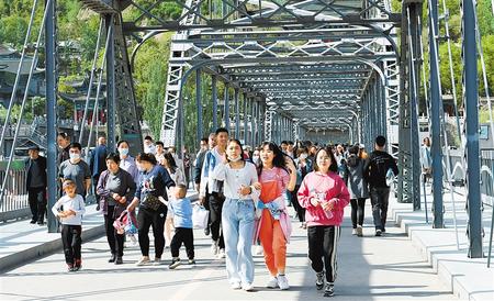 5月5日,蘭州中山橋上游人如織。新甘肅·甘肅日報(bào)記者 呂亞龍