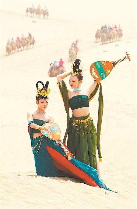 “五一”假期,游客在敦煌鳴沙山月牙泉景區(qū)拍照,該景區(qū)迎來今年旅游高峰。 新甘肅·甘肅日報(bào)通訊員 馬曉偉