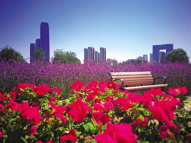7月上旬至10月上旬的蘭州,綠意盎然,黃河邊涼風(fēng)習(xí)習(xí),行走于南濱河路黃河健身步道,便可以看到醉蝶花、百日草、松果菊、波斯菊、菖蒲等花卉組合點(diǎn)綴在綠樹成蔭的黃河風(fēng)情線上,它們或星星點(diǎn)點(diǎn),或連接成片,為美麗的黃河風(fēng)情線增添了一份靚麗。