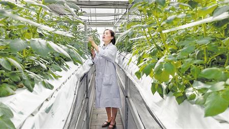 “營養(yǎng)液通過噴頭直接霧化噴灑在幼苗根系,能達到最大化吸收。”基地農藝師周愛愛告訴記者:“霧培法不僅大幅提高馬鈴薯脫毒種薯擴繁力,而且促使莊浪縣馬鈴薯從注重商品薯生產向脫毒種薯繁育轉型升級。”