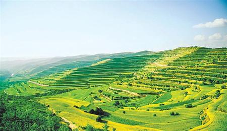 夏日時節(jié)的莊浪縣,滿眼盡是綠色。站在高處遠眺,層層梯田依山勢錯落分布,好似黃土高原上泛起的彩色波浪。