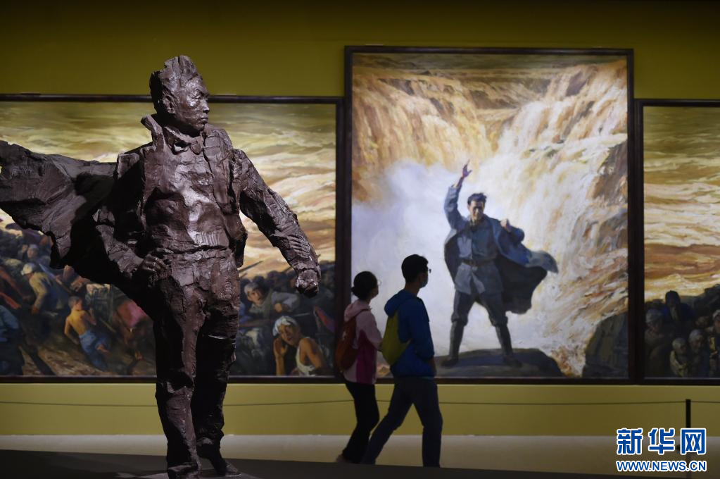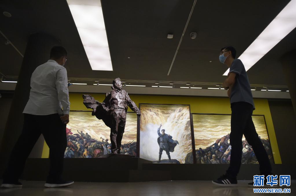 2021年8月14日,觀眾在中國(guó)美術(shù)館參觀展出作品。 8月13日,由中國(guó)美術(shù)館主辦的“在激流中前進(jìn)——中國(guó)美術(shù)館藏黃河題材美術(shù)精品展”在北京中國(guó)美術(shù)館拉開(kāi)帷幕。該展覽是文化和旅游部2021年度全國(guó)美術(shù)館館藏精品展出季項(xiàng)目,也是中國(guó)美術(shù)館“典藏活化”系列展之一,共展出中國(guó)美術(shù)館藏104位藝術(shù)家創(chuàng)作的中國(guó)畫、油畫、雕塑等131件作品。 新華社記者 魯鵬 攝