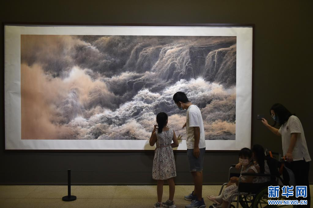 8月14日,觀眾在中國(guó)美術(shù)館參觀展出作品《大河史詩(shī)》。 新華社記者 魯鵬 攝