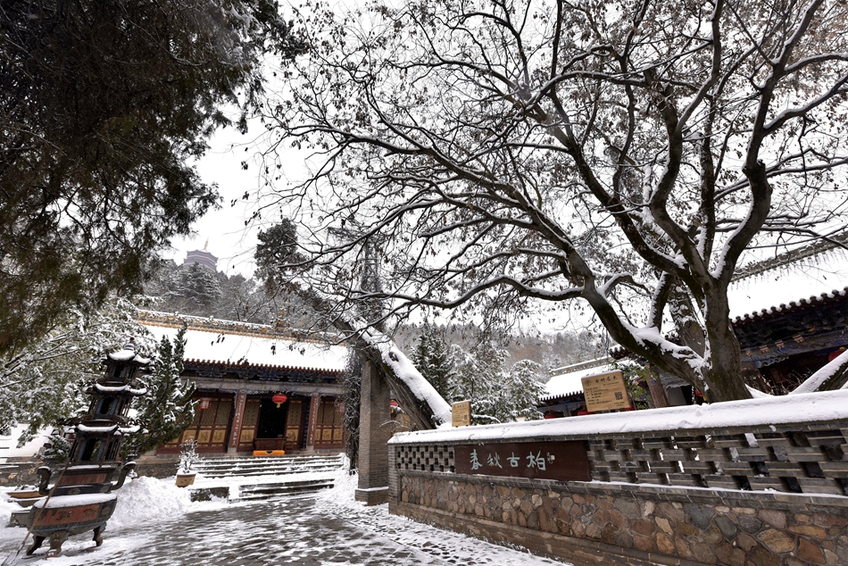 夏日炎炎,站在凈土寺觀音殿的高階之上,一聲鐘罄聲響起,仿佛震醒了山風(fēng),松濤幽碧隨之蕩漾,似是滌蕩了人間心塵,五蓮峰拖起紅墻青翠,中國(guó)古典色彩之美盡顯灑脫。雪落禪院,更是青松點(diǎn)翠,斗拱擎雪,莊嚴(yán)而不失華麗,踏雪只為聽(tīng)靜中天籟聲。