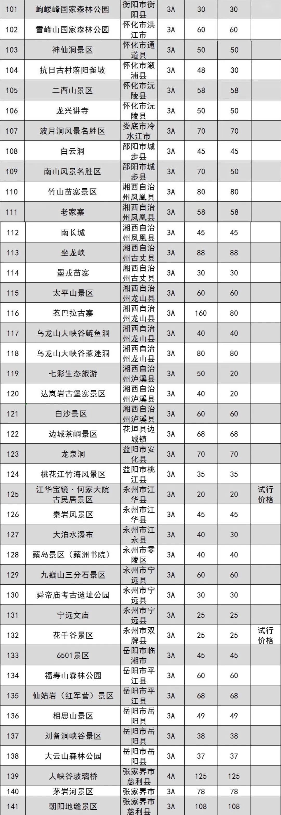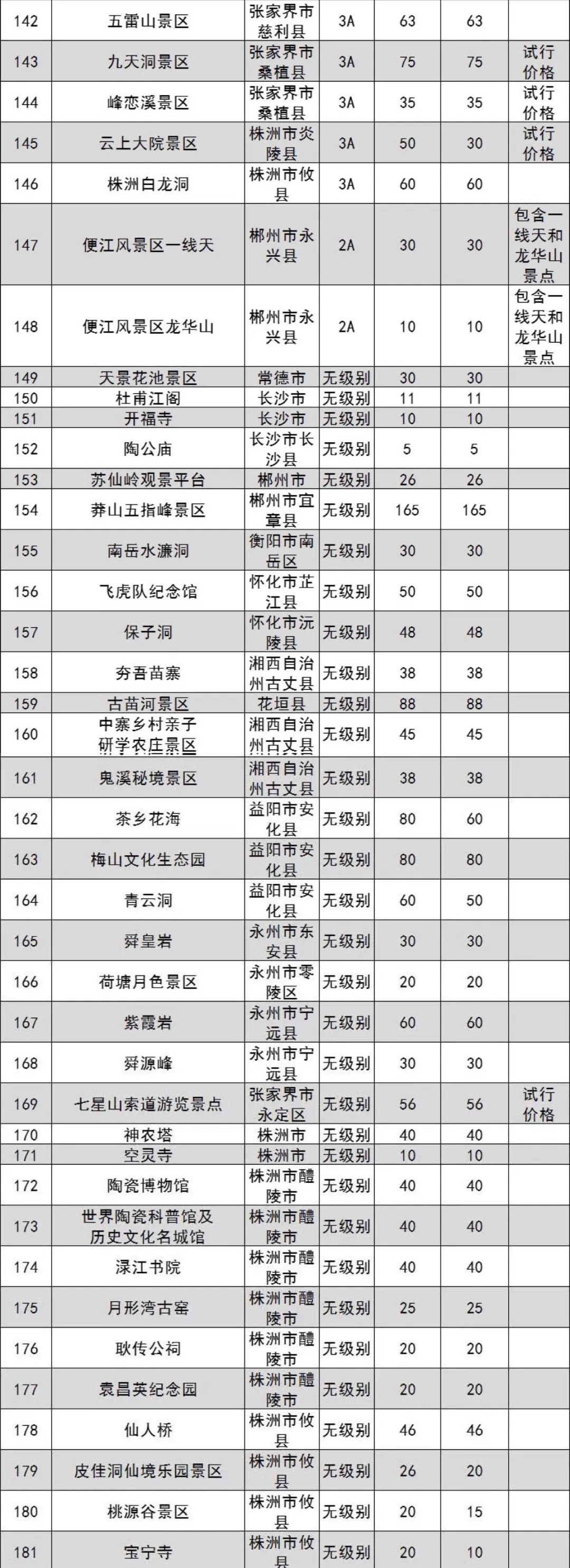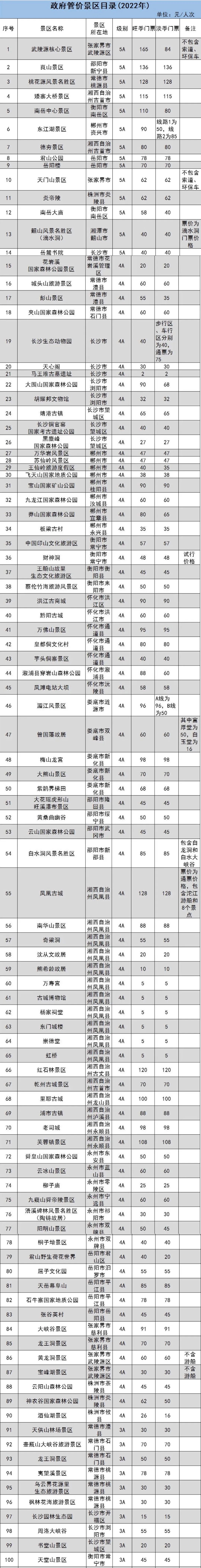 原標題:湖南省政府管價景區(qū)2022年門票出爐 共181個
