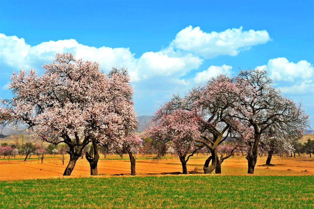 敦煌鳴沙山下千畝杏花競(jìng)相綻放 -