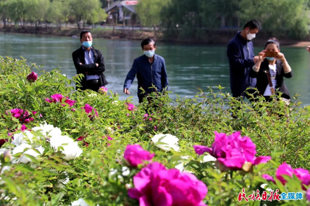 芳菲四月,臨夏各地觀賞性花卉陸續(xù)進(jìn)入盛花期。4月24日,在永靖縣城南濱河路,數(shù)千株牡丹競相綻放,紫的、白的、紅的……婀娜多姿的各色牡丹花香四溢,吸引了大批游客前來觀花賞景。