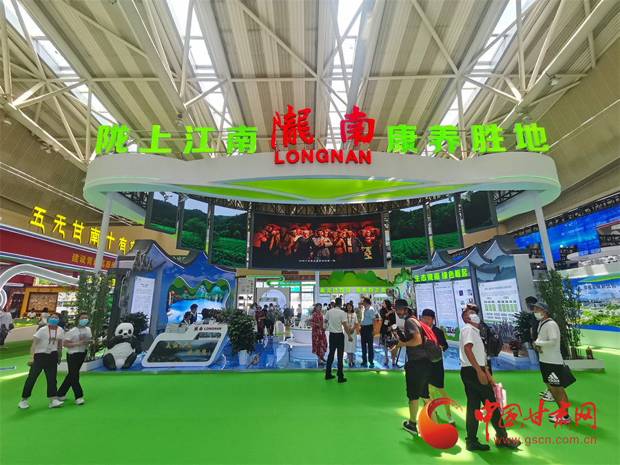 隴南館位于國際會展中心二樓甘肅特色優(yōu)勢產(chǎn)業(yè)展區(qū),全方位、立體化展示推介了隴南“十大產(chǎn)業(yè)”的整體布局、發(fā)展基礎(chǔ)、初步成效和遠(yuǎn)景目標(biāo)。展館主題為“隴上江南、康養(yǎng)勝地”,面積為252平方米,主要有文旅康養(yǎng)產(chǎn)業(yè)、山地特色農(nóng)業(yè)、招商項目推介及投資洽談等三個功能區(qū),集中展示文旅康養(yǎng)、山地特色農(nóng)業(yè)兩大產(chǎn)業(yè)。展館內(nèi)設(shè)置燈箱片展示了隴南市建設(shè)“三城五地”目標(biāo)任務(wù)和“十大產(chǎn)業(yè)”等內(nèi)容。館內(nèi)設(shè)置電子大屏播放各類宣傳片,還有民俗文藝及茶藝展演活動。