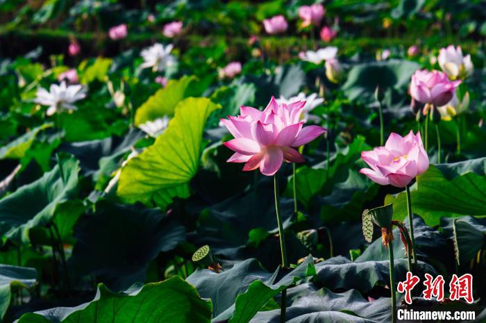 7月16日,“為荷而來”第七屆中國建蓮文化旅游節(jié)在三明市建寧縣濉溪鎮(zhèn)謝馬蘇梯田蓮海舉行。在梯田蓮海中放眼望去,層層疊疊的荷葉鋪滿湖面,或美麗綻放,或含苞待放。粉白淡紅的花瓣在陽光的照耀下格外嬌艷美麗。