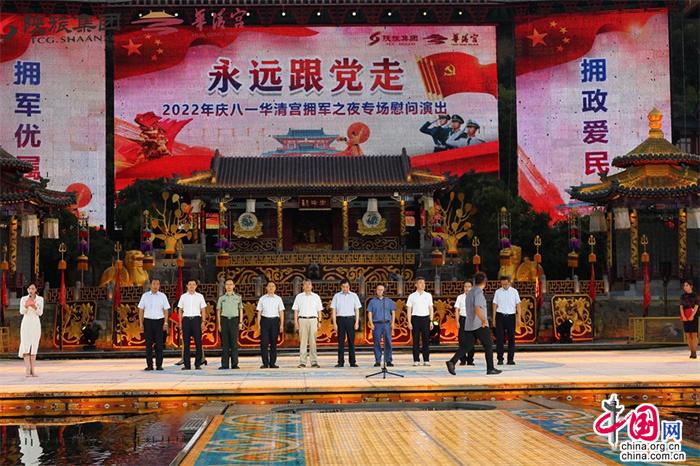 7月31日,陜西華清宮景區(qū)舉辦“永遠(yuǎn)跟黨走·2022年慶八一華清宮擁軍之夜專場慰問演出”。