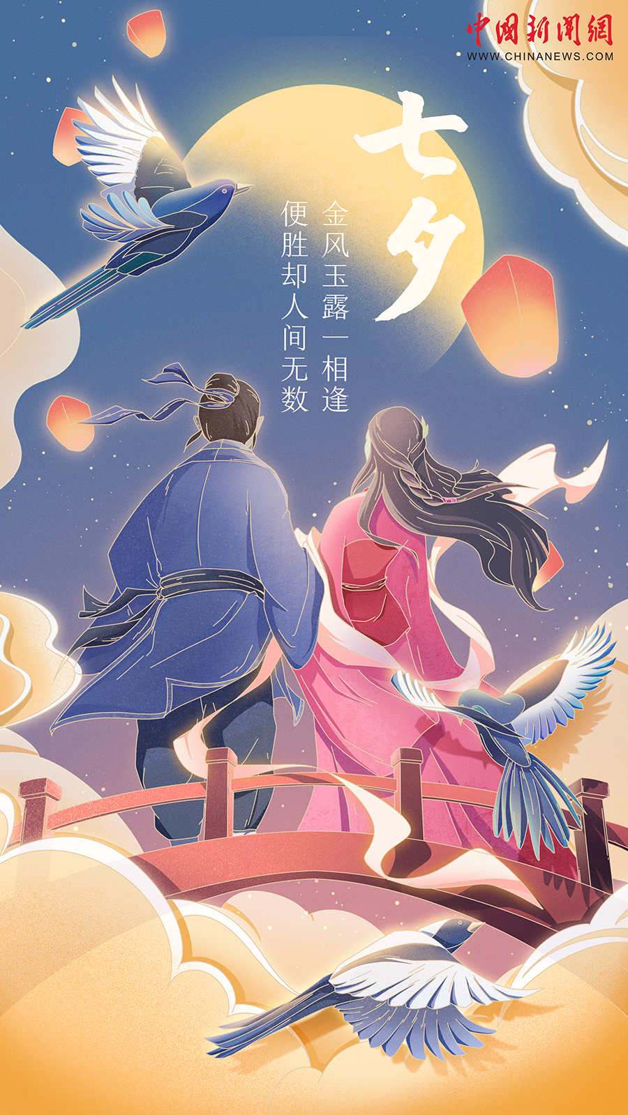 農(nóng)歷七月初七,七夕節(jié),一個洋溢著浪漫氣息的中國傳統(tǒng)節(jié)日。小時候,它是奶奶、外婆口中動人的美麗傳說;上學時,它是課本里讓你感嘆的課文、詩詞與插畫;長大后,它是你與那個人最在乎的特殊日子之一。雙向奔赴的歡喜,轟轟烈烈的告白,平凡溫暖的陪伴,一起變老的誓言……