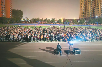 河南舞鋼第二高級中學校園公益電影放映現(xiàn)場。本文作者供圖