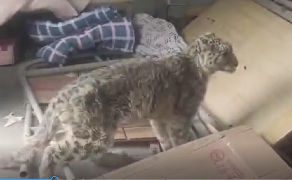 雪豹被困廢舊儲藏室。(大熊貓祁連山國家公園甘肅省管理局張掖分局供圖)