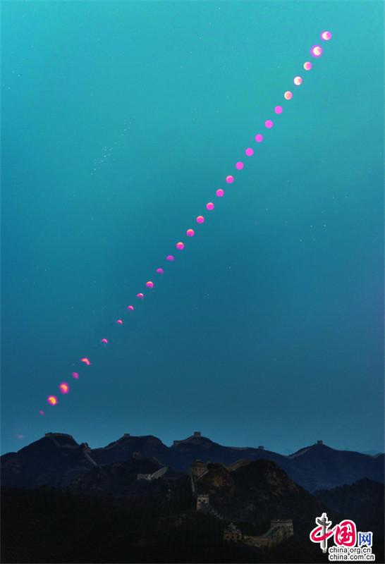 11月8日,月全食(紅月亮)天象驚艷亮相金山嶺長城。(紀(jì)正權(quán) 張愛東)