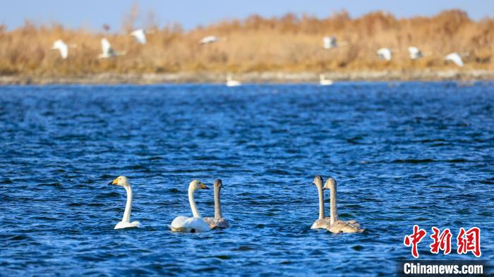 博湖縣境內(nèi)的博斯騰湖白鷺洲迎來(lái)大批天鵝?!∧昀?nbsp;攝