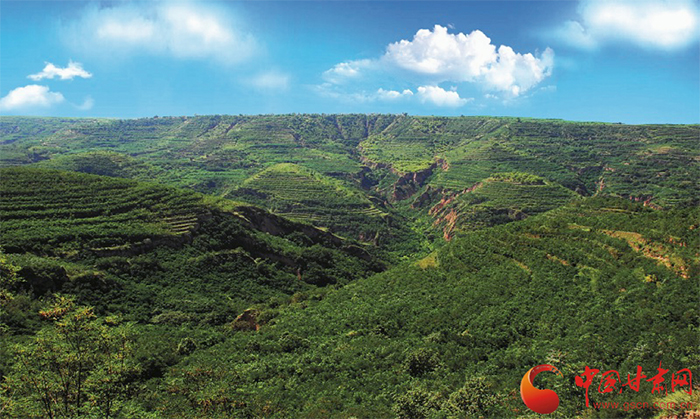 興修水平梯田、營造水保防護林、人工種草、發(fā)展果園經(jīng)濟林、修筑淤地壩、水窖等攔蓄工程,一張藍圖繪到底,一屆接著一屆干,涇川人一步步使得流域內(nèi)水土流失得到有效治理。綠樹、芳草、碧水、藍天,自然風光優(yōu)美,環(huán)境條件愜意舒爽,田家溝成了人們贊譽不止的“天然氧吧”。