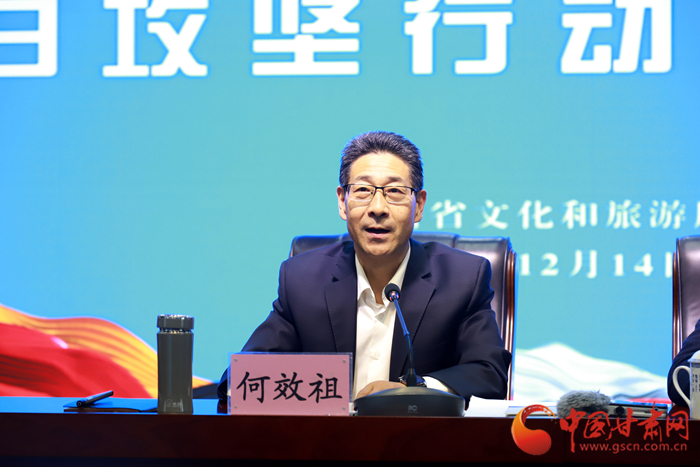 中國(guó)甘肅網(wǎng)12月14日訊 (本網(wǎng)記者 張?zhí)m琴 文/圖)14日上午,甘肅省文旅廳召開“文化進(jìn)萬(wàn)家 旅游迎新春”百日攻堅(jiān)行動(dòng)啟動(dòng)大會(huì),向全省文旅系統(tǒng)吹響了復(fù)工復(fù)產(chǎn)的“動(dòng)員令”,市場(chǎng)復(fù)蘇的“集結(jié)號(hào)”。省委宣傳部副部長(zhǎng)、省文旅廳黨組書記何效祖在蘭州主會(huì)場(chǎng)出席并講話,通過(guò)視頻會(huì)議向各市州文旅部門安排部署工作。