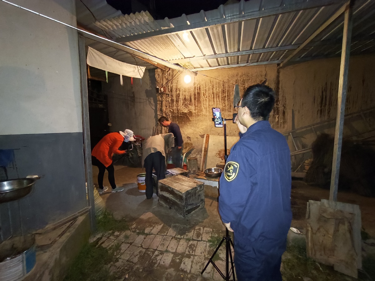 在她身后,蘭州海關幫扶工作隊員們各司其責,有的手扶打光燈隨時調整補光,有的緊盯攝像機鏡頭及時調整畫幅和角度,有的作為觀眾與文香蓮女士眼神交流……儼然一個專業(yè)拍攝團隊。