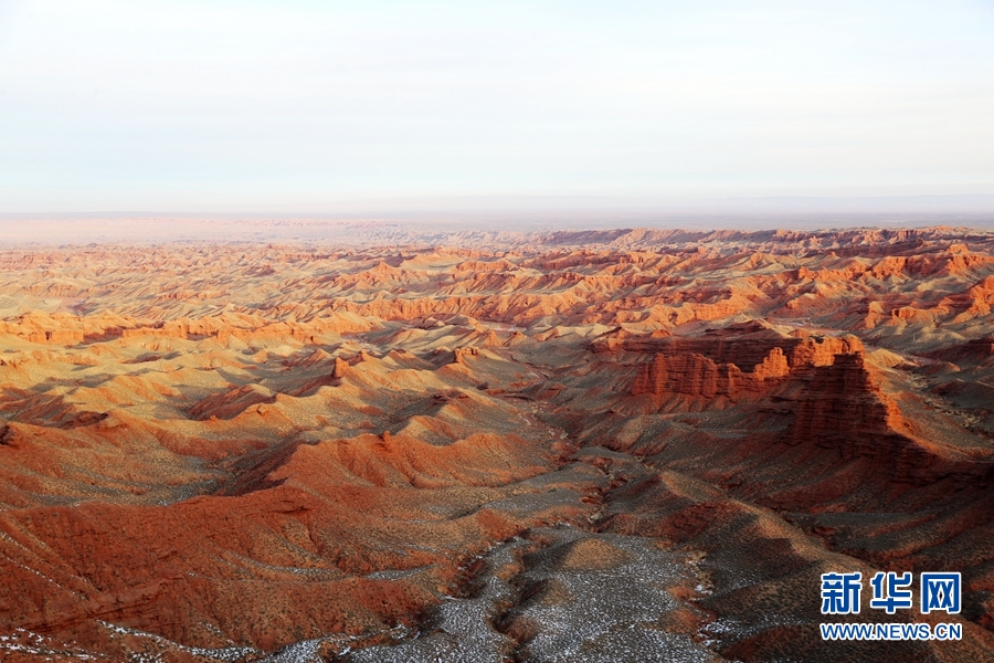 1月1日清晨,甘肅張掖平山湖大峽谷景區(qū)雪后初霽、群峰聳立,在新年朝陽(yáng)的照耀下更顯雄渾壯觀。新華網(wǎng)發(fā)(成林 攝)
