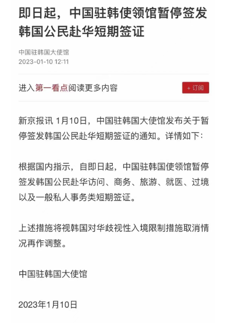 駐韓國(guó)大使館:暫停簽發(fā)韓國(guó)公民赴華短期簽證
