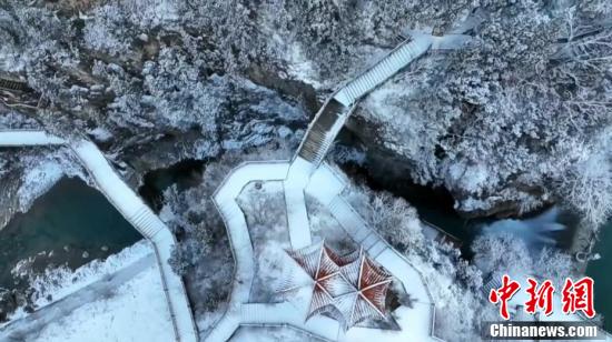 航拍大峪溝雪景。